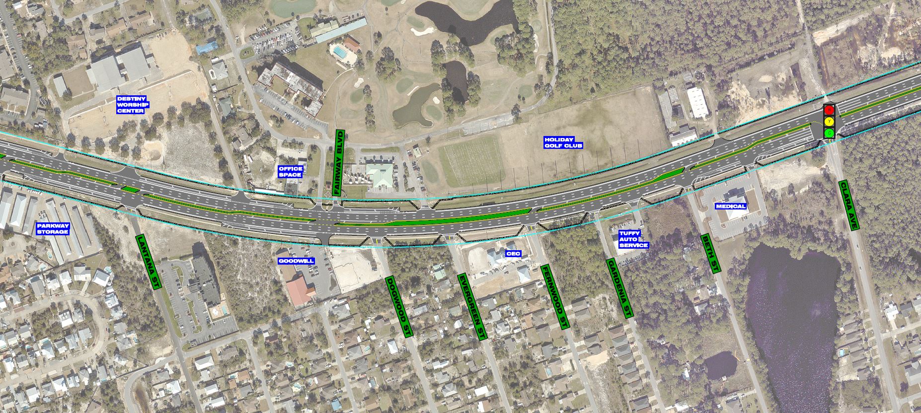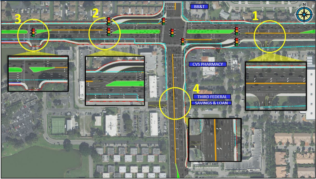 The project involves widening a 1.8-mile segment of Atlantic Avenue from Florida's Turnpike to Jog Road in unincorporated Palm Beach County. The proposed project would widen the existing four-lane roadway to a six-lane roadway with special emphasis on improvements for bicyclist and pedestrian safety. Additionally, stormwater management facilities will be evaluated within the study area. Several intersection alternatives were developed at the intersection of Atlantic Avenue and Jog Road including a Partially Displaced Left Turn (PDLT) concept. The project also involved extensive public involvement in addition to coordination with the Palm Beach TPA, Lake Worth Water Management District, and Palm Beach County